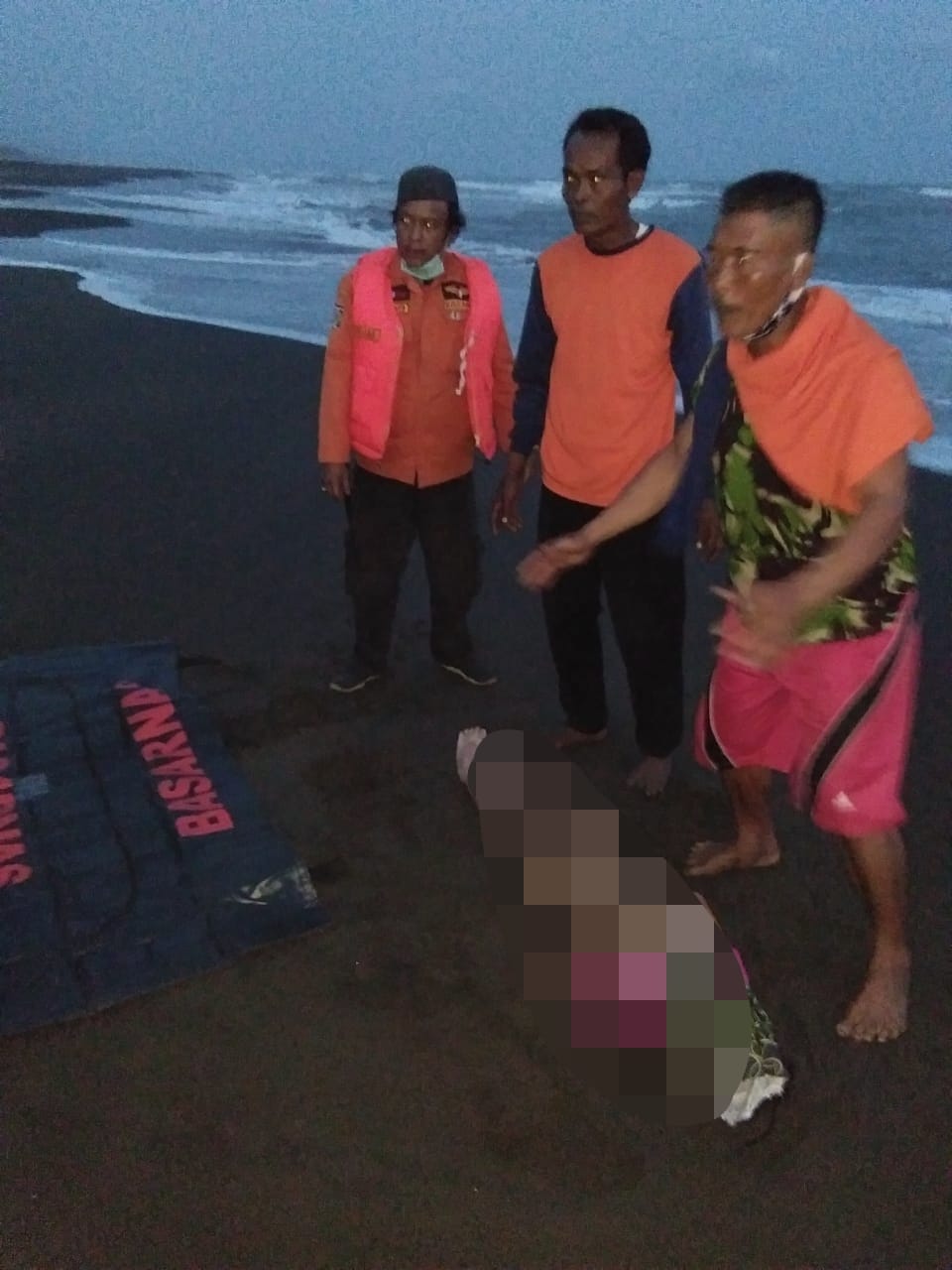Korban tenggelam di Pantai Sodong Adipala di evakuasi.