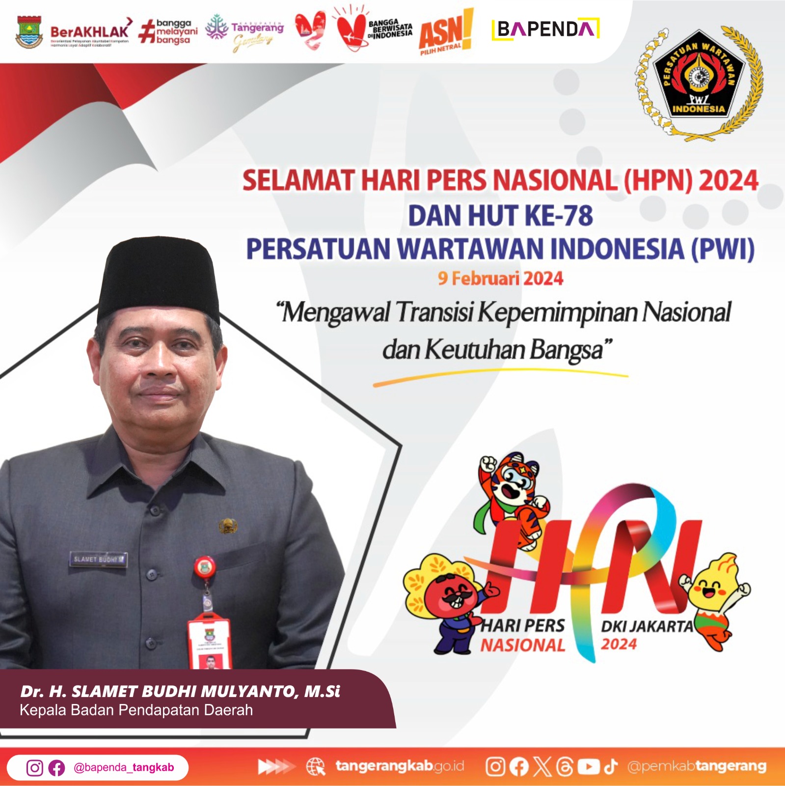 Badan Pendapatan Daerah Kabupaten Tangerang Mengucapkan Selamat Hari Pers Nasional 2024
