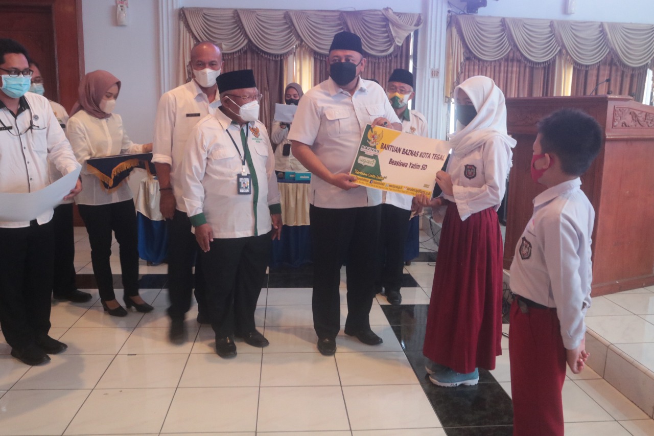 Tegal (Kejarinfo ) – Wali Kota Tegal, H. Dedy Yon Supriyono menyalurkan bantuan catur wulan III tahun 2021 dari Badan Amil Zakat Nasional (Baznas) Kota Tegal. Wali Kota menyerahkan secara bantuan secara simbolik kepada para mustahik, Rabu (8/9/2021) di Ruang Adipura, Komplek Balai Kota Tegal.