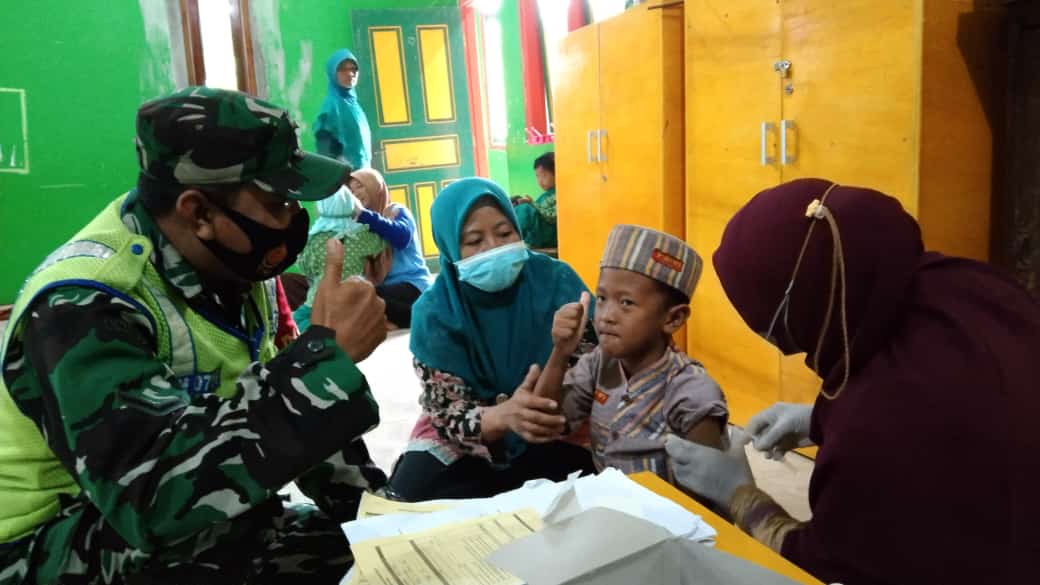“Dan Alhamdulillah semua berjalan aman dan lancar. Anak-anak juga senang divaksin demi kesehatan mereka,” ujar Babinsa Serda Jumeno.