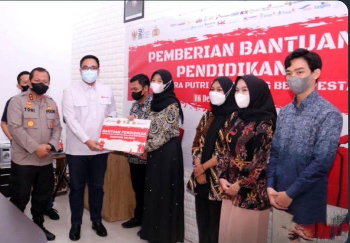 Dukungan pendidikan dalam bentuk tabungan pendidikan masing masing senilai Rp 5 juta di serahkan kepada 21 putra putri anggota Polri berprestasi.