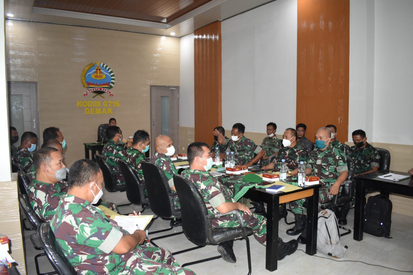 Demak– Komandan Kodim 0716/Demak Letkol Czi Pribadi Setya Pratomo memimpin sidang Pangkat dan Karier (Pankar) Usul Kenaikan Pangkat (UKP) periode 01-10-2022 dan Sidang Panitia Kepangkatan dan Karier (Pankar) jabatan bagi Bintara dan Tamtama di lingkungan Kodim 0716/Demak. Kegiatan sidang dihadiri oleh Kasdim 0716/Demak Mayor Inf Supriyono, Perwira Seksi dan Danramil jajaran Kodim 0716/Demak yang dilaksanakan di Ruang Data Kodim 0716/Demak. Kamis 06/01/2022.