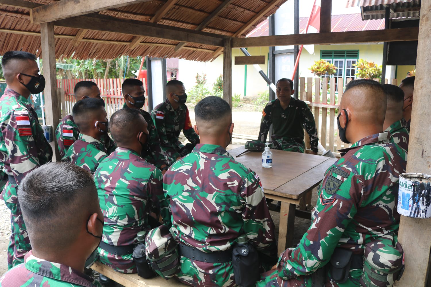 Setelah melakukan Pengecekan Personil Satgas Pam Obvit, Dandim 1509/Labuha Letkol Inf Untung Prayitno.S.I.P.,M.Han dan Danyonif RK 732/Banau Letkol Inf Harriyanto Hendrik,SE, langsung bertolak menuju Posramil Yonif RK 732/Banau yang berada di Desa Wayaloar kecamatan Obi Selatan, setibanya Dandim 1509/Labuha pun mengumpulkan Personil Posramil di Pendopo untuk memberikan pengarahan kepada Personil Posramil, Sabtu (12/02/2022),