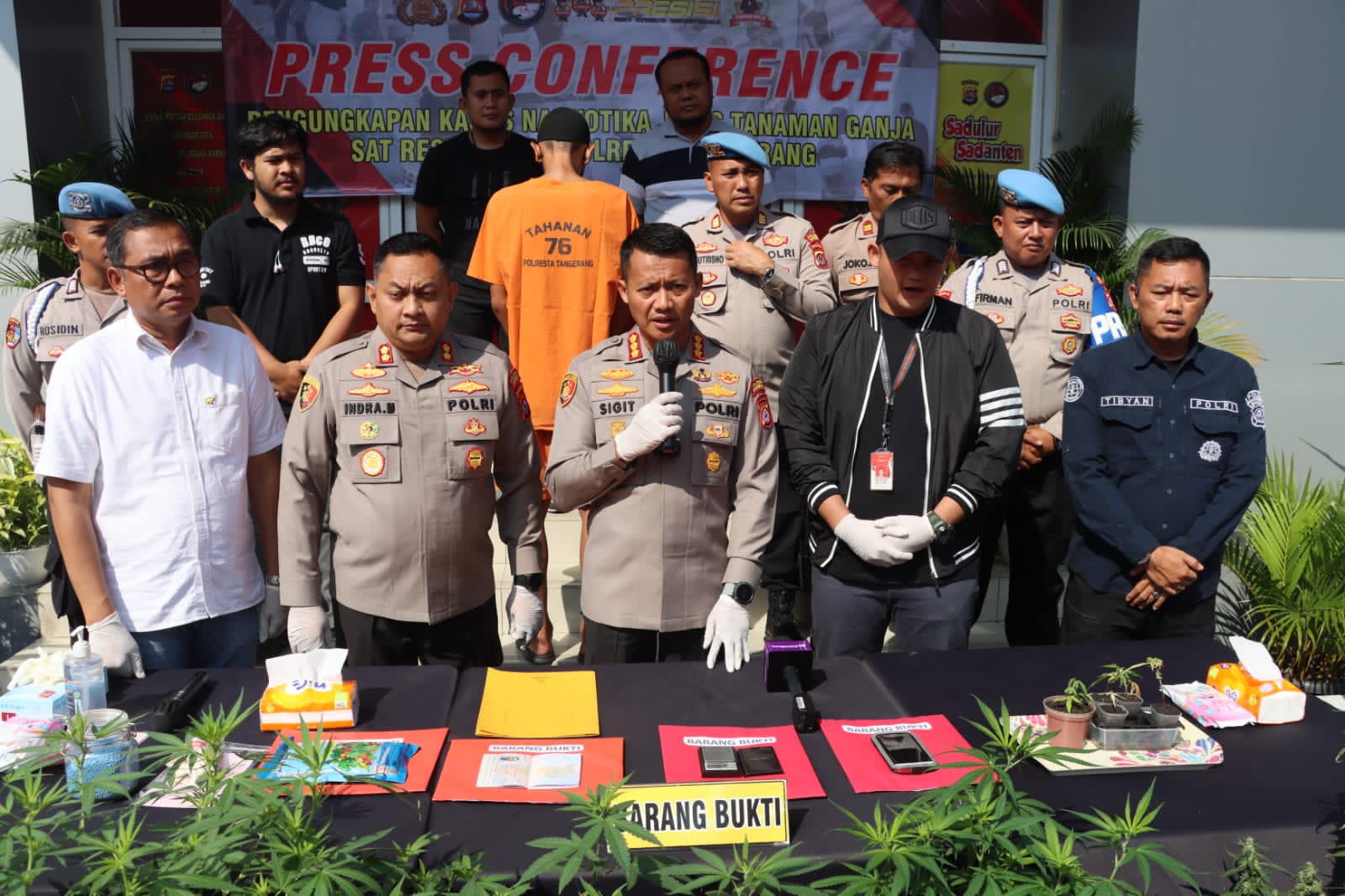 Satuan Reserse Narkoba Polresta Tangerang Polda Banten menangkap seorang pria berinisial RA, warga Kebayoran Lama, Jakarta Selatan. RA ditangkap lantaran kedapatan menanam ganja di rumahnya di Desa Sindang Jaya, Kecamatan Sindang Jaya, Kabupaten Tangerang.