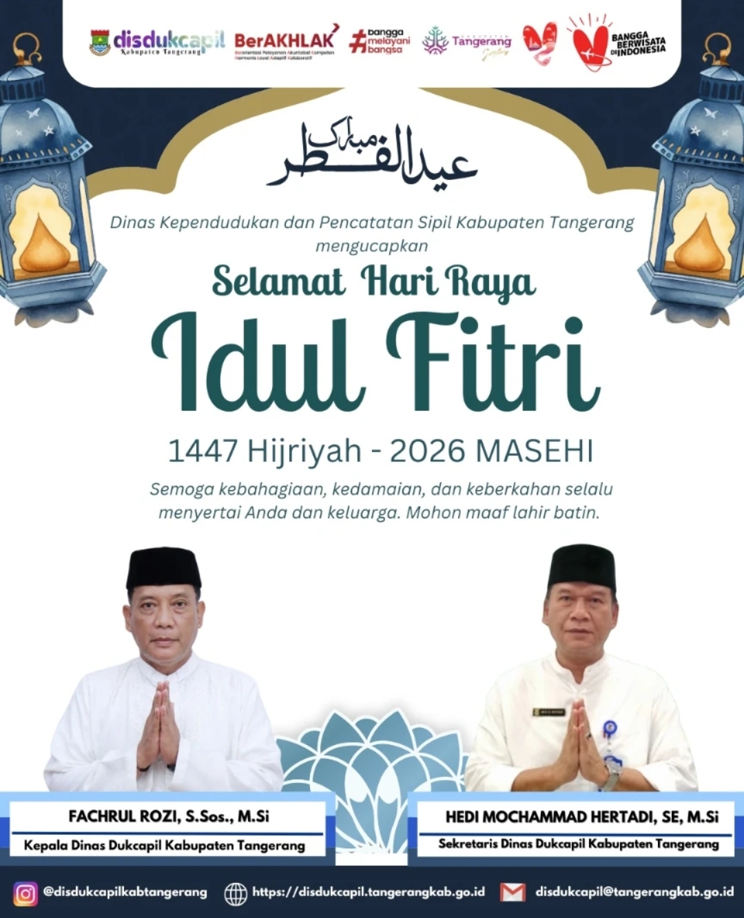 Dinas Kependudukan dan Catatan Sipil Kabupaten Tangerang Mengucapkan Selamat Hari Raya Idul Fitri 1447 Hijriah