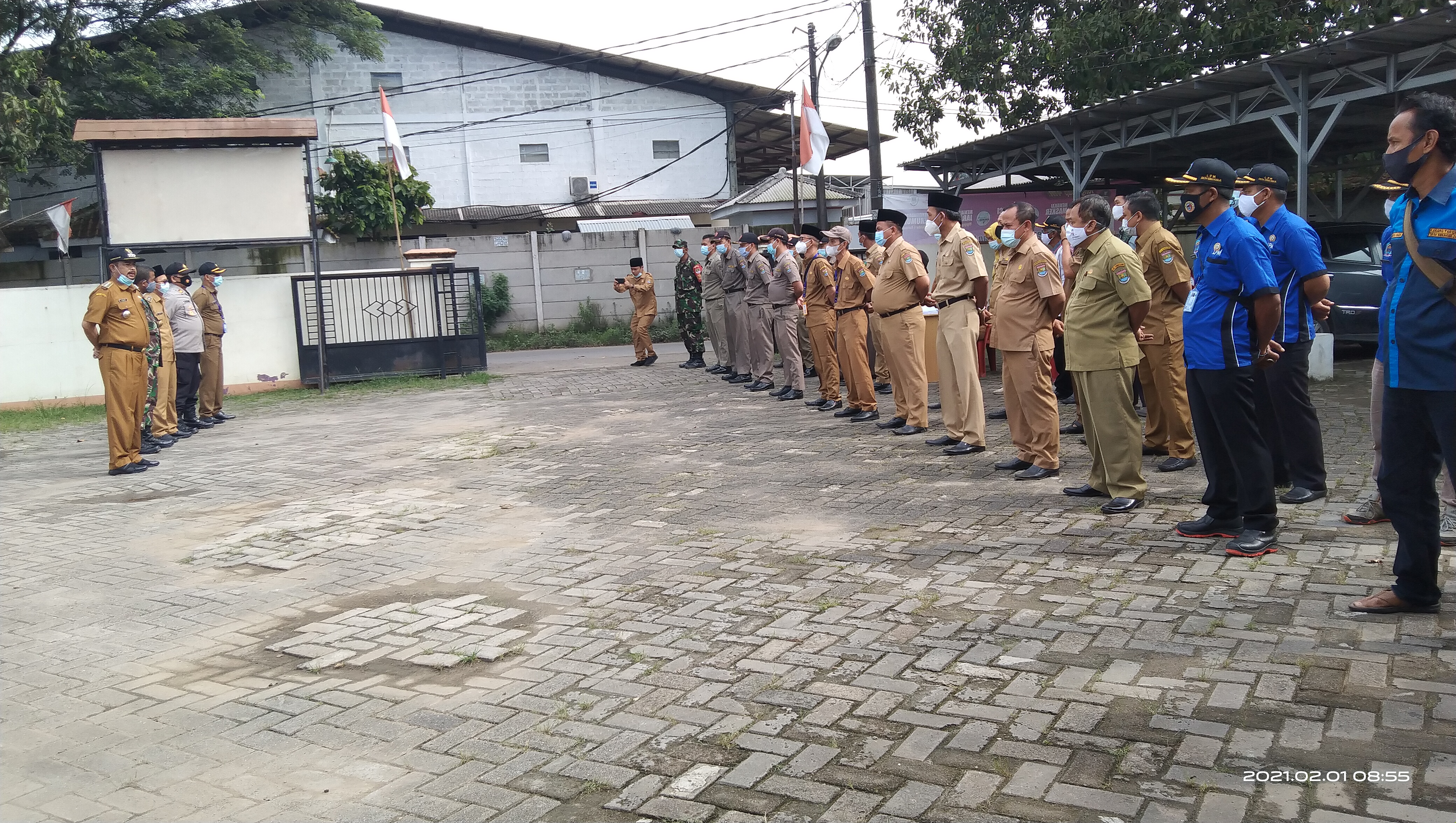 KEJARINFO.com -Dalam rangka pengendalian dan pencegahan penyebaran corona virus disease 2019 ( covid-19 ) pada masa Pembatasan Sosial Skala Besar (PSBB) tidak henti hentinya forkompicam Sindang jaya terus meminimalisir angka Covid 19 dengan cara menggelar yustisi dan razia Masker, acara digelar dijalan raya situ pondok depan kantor desa sukaharja. “Senin 1/2/2021