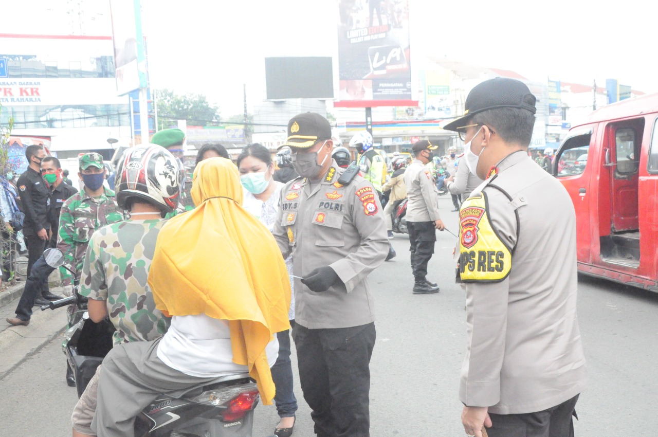 Di hari pertama pelaksanaan PSBB pada Sabtu (18/4/2020) di wilayah Kabupaten Tangerang yang merupakan wilayah hukum Polda Banten telah ditemukan beberapa pelanggaran yang dilakukan oleh masyarakat yang belum mentaati sesuai dengan ketentuan atau aturan dalam penerapan PSBB