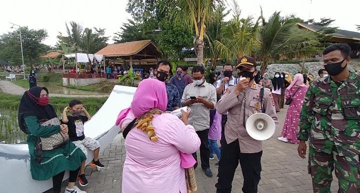 Kota Serang – Humas Polres Serang Kota Polda Banten, Bersama Satgas Covid-19 kecamatan Curug, Himbau Pengunjung Taman wisata Mahoni Bangun Sentosa (MBS) patuhi Protokol Kesehatan di kelurahan Kemanisan kecamatan Curug Kota Serang , Minggu (03/01/2021).
