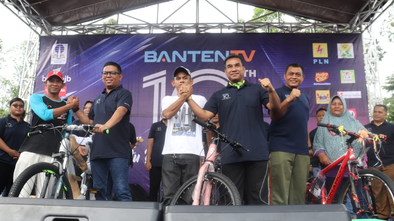 Serang – Dalam rangka memeriahkan HUT Banten TV yang Ke 10, Kabid Humas Polda Banten Kombes Pol Edy Sumardi ikut hadir Partisipasi memeriahkan acara Fun Walk, Usai menggelar Jalan Sehat bersama Kabid Humas membagikan undian dan Doorprize berupa Sepeda motor, sepeda, mesin cuci, Tv LED, dan beberapa kipas angin kepada peserta yang mengikuti senam zumba di lapangan alun-alun serang, Minggu, 1/03/2020.