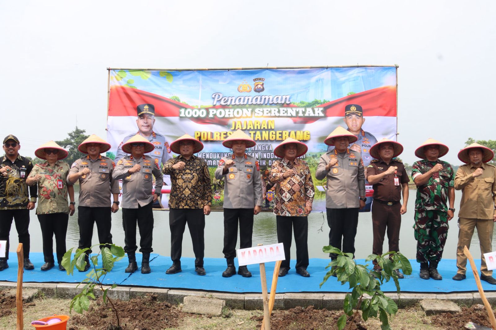 Polresta Tangerang Polda Banten melaksanakan kegiatan groundbreaking atau peletakan batu pertama pembangunan Jembatan Merah Putih Presisi, Kampung Ilat RT 02/03, Desa Pangadegan, Kecamatan Pasar Kemis, Selasa (21/4/2026). Kegiatan tersebut dirangkaikan dengan penanaman 1.000 pohon, yang ditanam secara simbolis di Kampung Pondok, Desa Sukaharja, Kecamatan Sindang Jaya.