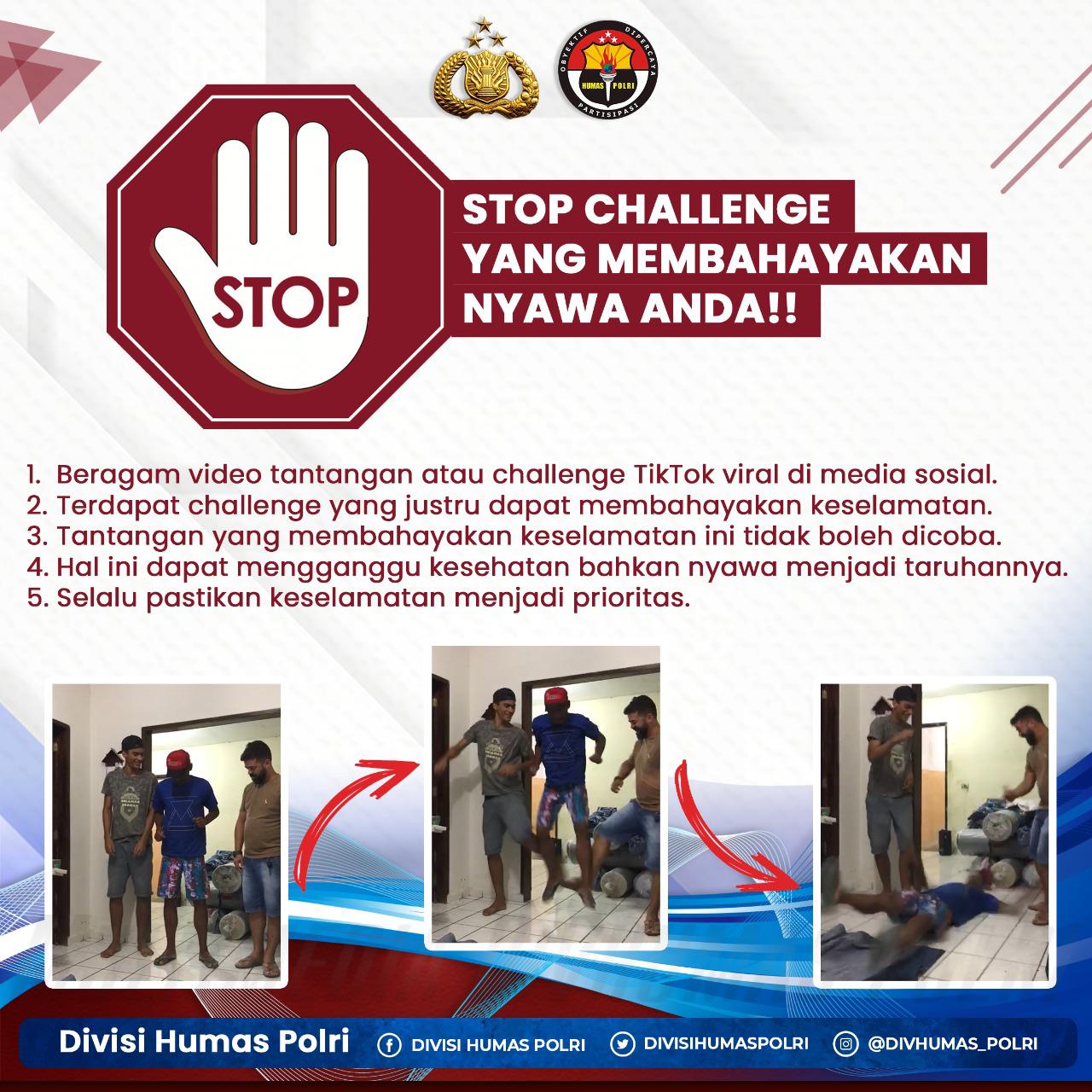 Perkembangan Media sosial sangat mempengaruhi kehidupan manusia di zaman sekarang. Hal ini menjadi faktor yang menyebabkan munculnya berbagai challenge di internet yang viral ke seluruh dunia. Bahkan banyak remaja yang mengalami cedera dan kematian akibat mencoba challenge berbahaya ini, tanpa memikirkan dampak terburuknya, bagi diri sendiri dan orang lain.