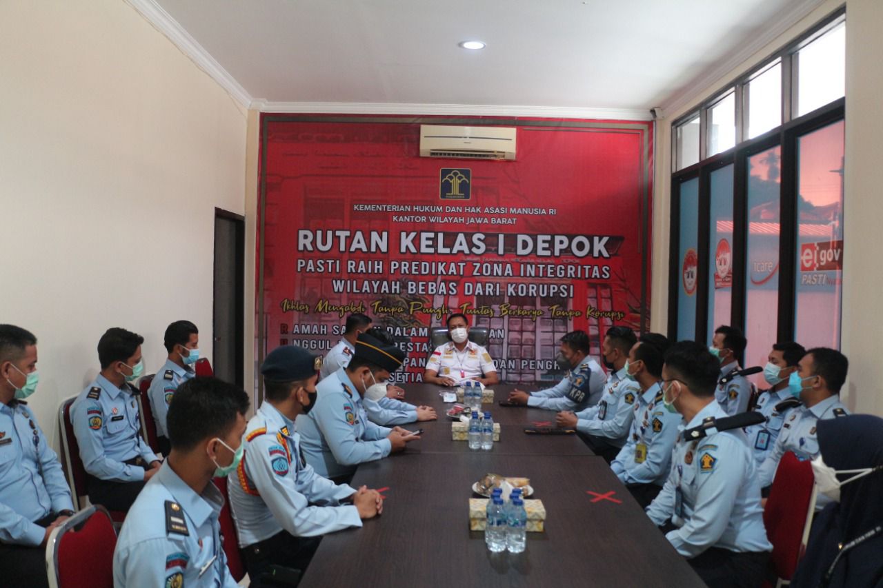 Pagi ini tepat di Pukul 07.45 WIB, Kepala Kantor Wilayah Kementerian Hukum dan HAM Jawa Barat menyambangi Rutan Kelas I Depok. Kunjungan yang disambut langsung oleh Plt. Kepala Rutan Kelas I Depok, Muhamad Irvan Muayat serta di dampingi Pejabat Struktural berlangsung dengan tetap menerapkan standar protokol kesehatan yang ketat.