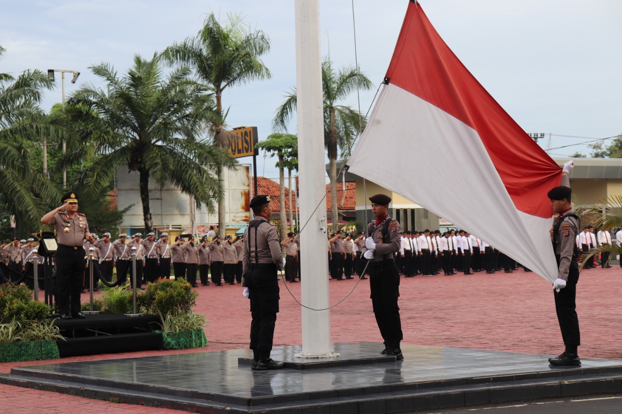 Upacara dipimpin langsung oleh Kapolda Banten Irjen Pol Drs. Agung Sabar Santoso, S.H.,M.H dan dihadiri oleh Wakapolda Banten, Irwasda Polda Banten, para Pejabat Utama Polda Banten, Pamen-Pama, Brigadir, Tamtama dan Aparatur Sipil Negara (ASN) Polda Banten.