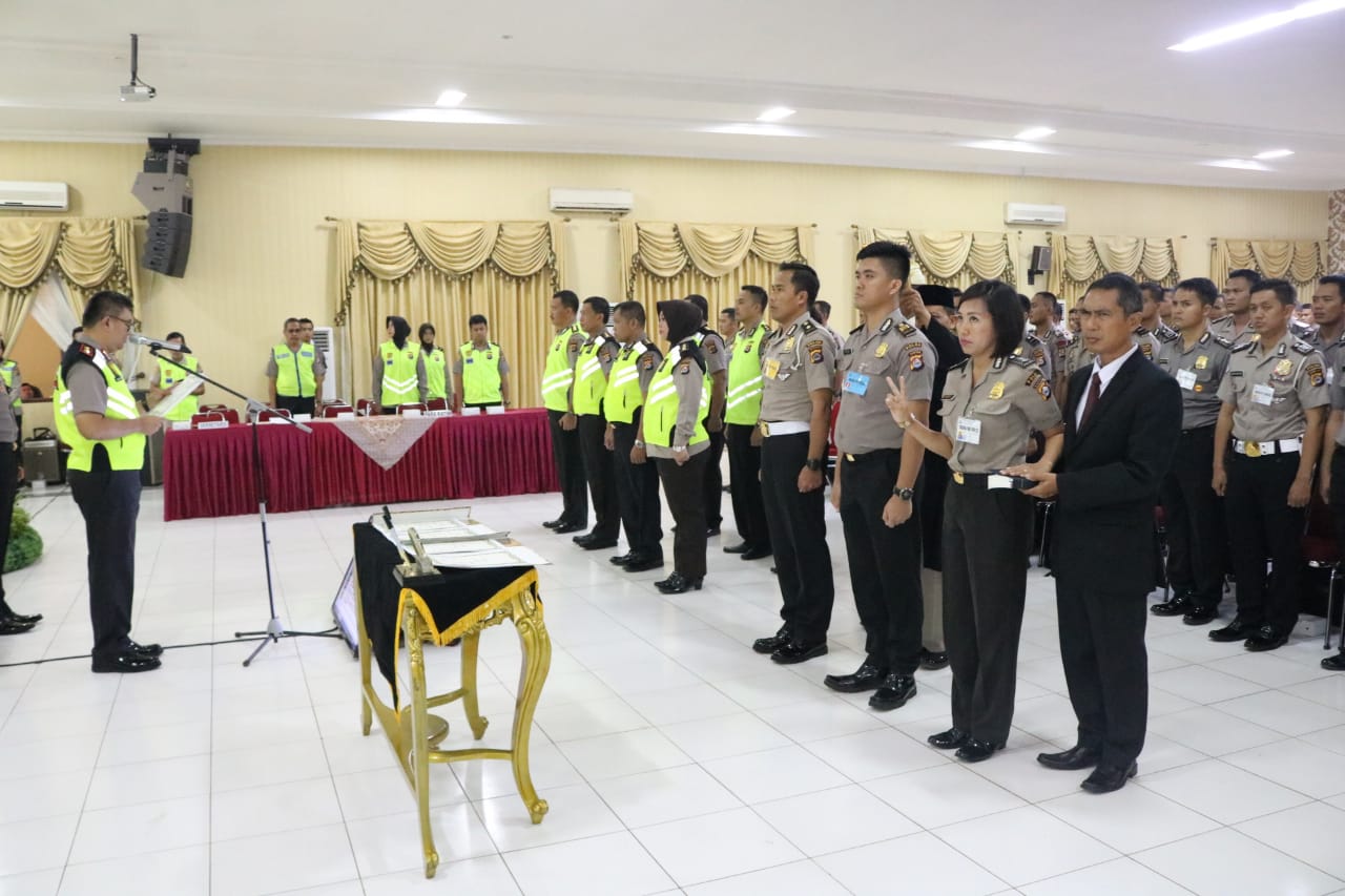 Serang– Kapolda Banten Irjen Pol Drs. Tomsi Tohir, M.Si secara langsung memimpin Pengambilan Sumpah Dan Penandatanganan Pakta Integritas Seleksi Pendidikan Sespimmen, Sespimma Dan Sip Tahun Anggaran 2019 Panda Banten, di Aula Serbaguna Polda Banten, Senin (21/01/19)