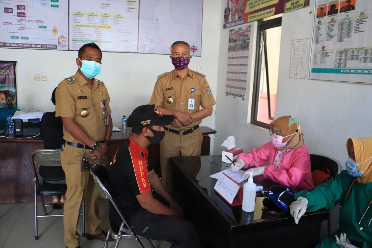 “Allhamdulillah hari ini sedang dilakukan vaksinasi tahap pertama bagi warga masyarakat disini (Desa Cikuya), ini dilakukan untuk mempercepat laju vaksinasi sesuai arahan dari pak Bupati, selain itu vaksinasi ini juga untuk menguatkan imunity tubuh bagi masyarakat,” ucapnya.