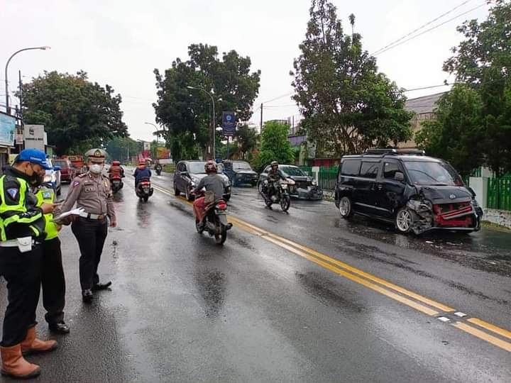 Kecelakaan karambol terjadi di Jalan Suparjo Rustam, Desa Sokaraja Tengah Kecamatan Sokaraja Kabupaten Banyumas, Senin (21/6/2021). Kecelakaan yang membuat geger warga itu melibatkan empat kendaraan roda empat.