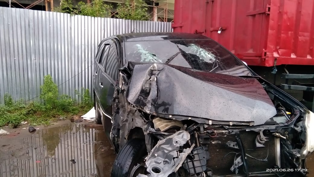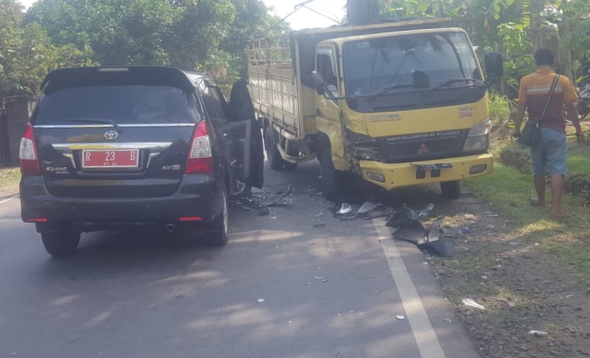 Kejarinfo ( Banyumas ) Mobil Dinas Plat Merah (Innova) Dengan Nomor Polisi R 23 B Mengalami kecelakaan menabrak Truck Engkel dengan Nomor Polisi H 1376 WS, di Jalan Raya Kaliori – Patikraja, Sabtu (26/06/2021).