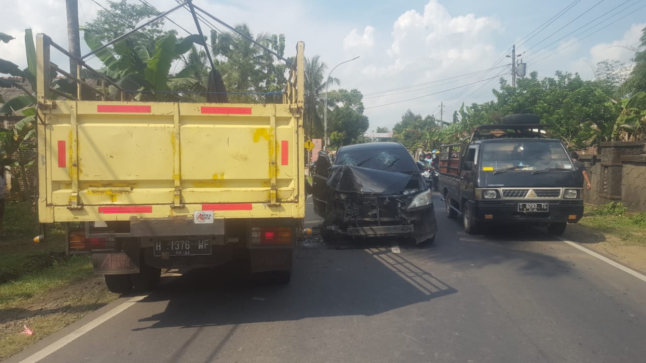 Kecelakaan terjadi sekitar jam 13.15 siang tadi antara mobil Dinas denqan Truck tanpa muatan diruas jalan Kaliori -Patikraja tepatnya sebelah barat Kantor Desa Kaliori Kecamatan Kalibagor Kabupaten Banyumas.