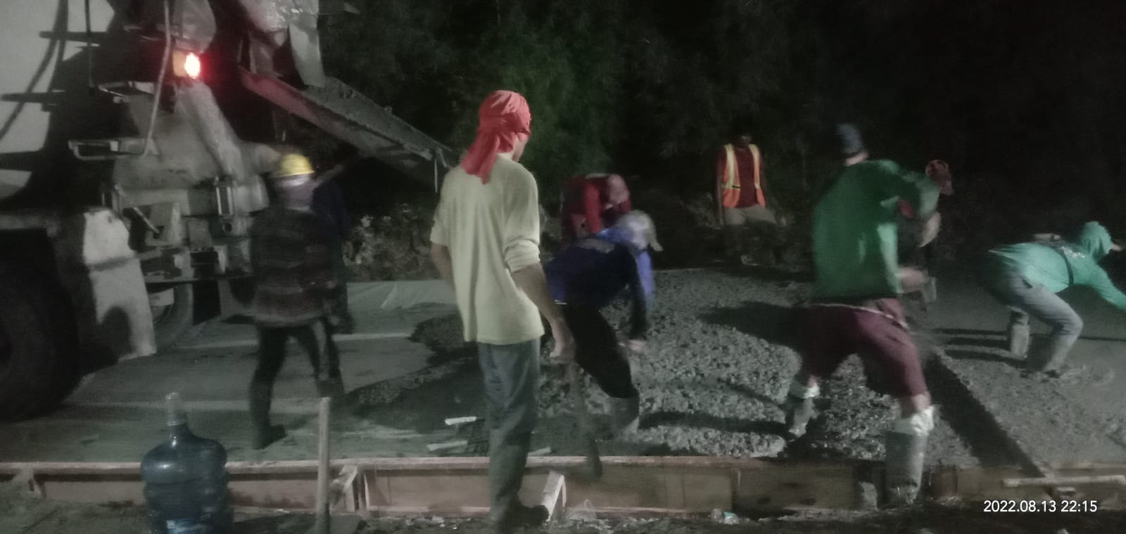 Waktu saya ngukur sore tadi di beberapa titik lokasi baik , sebelum pengecoran di mulai sudah pas tidak tau kenapa ini bisa kurang, padahal saya ngukur sore sebelum pengecoran berlangsung ngambil lima titik ujung dan di titik 50, tengah itu semuanya masuk 25 cm,” lanjutnya