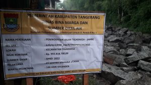 kejarinfo.com-Pemerintah kabupaten Tangerang selalu berusaha menjalankan program bupati Tangerang Ahmed Zaki Iskandar yakni menuju Tangerang termasuk fasilitas pembangunan struktur dan infrastruktur di beberapa wilayah melalui Dinas Bina Marga dan Sumber Daya Air (DBMSDA), salah satunya peningkatan jalan raya Tigaraksa – Jambe yang berlokasi di desa tapos kecamatan tigaraksa
