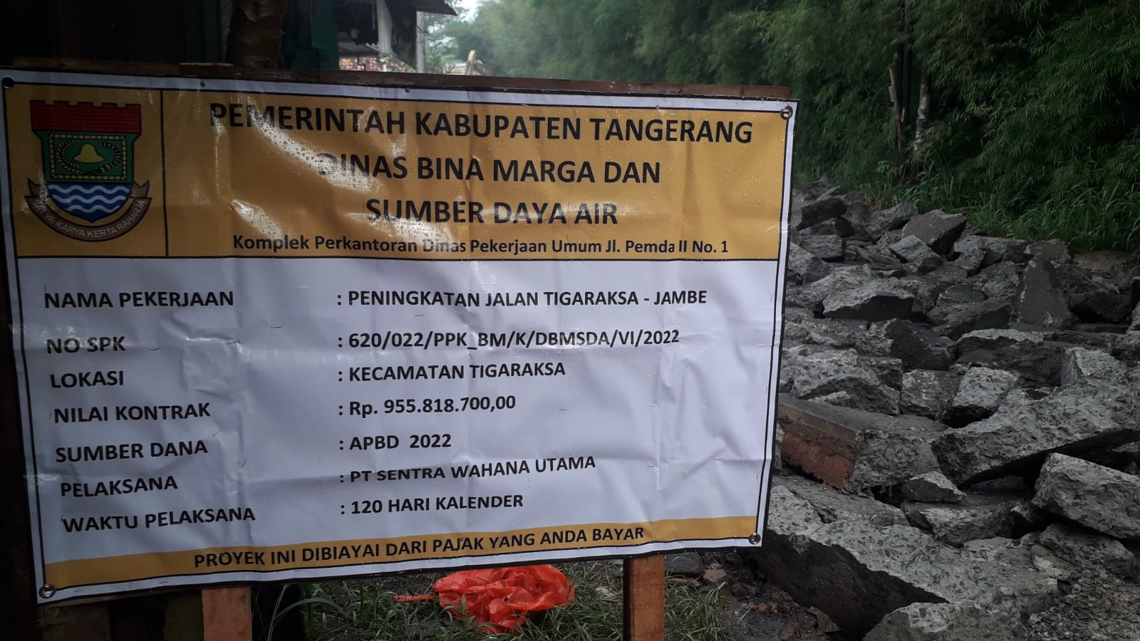 Kegiatan betonisasi tersebut di kerjakan oleh PT Sentra Wahana Utama sumber dana APBD Kabupaten tangerang th 2022, dengan nilai kontrak 955.,818.700.00 dengan masa pengerjaan 120 hari