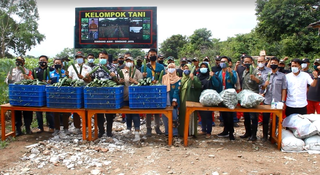 KEJARINFO.COM – Program ketahanan pangan yang dipelopori manajemen suvarna sutera dan mega darma yudha yang bekerja sama dengan pemerintah desa Sindang asih Kecamatan Sindang jaya kabupaten Tangerang, acara panen raya yang diisi dengan rangkaian kegiatan santunan anak yatim dihalaman perkebunan kelompok tani mega darma yudha.”Kamis 18/2/2021