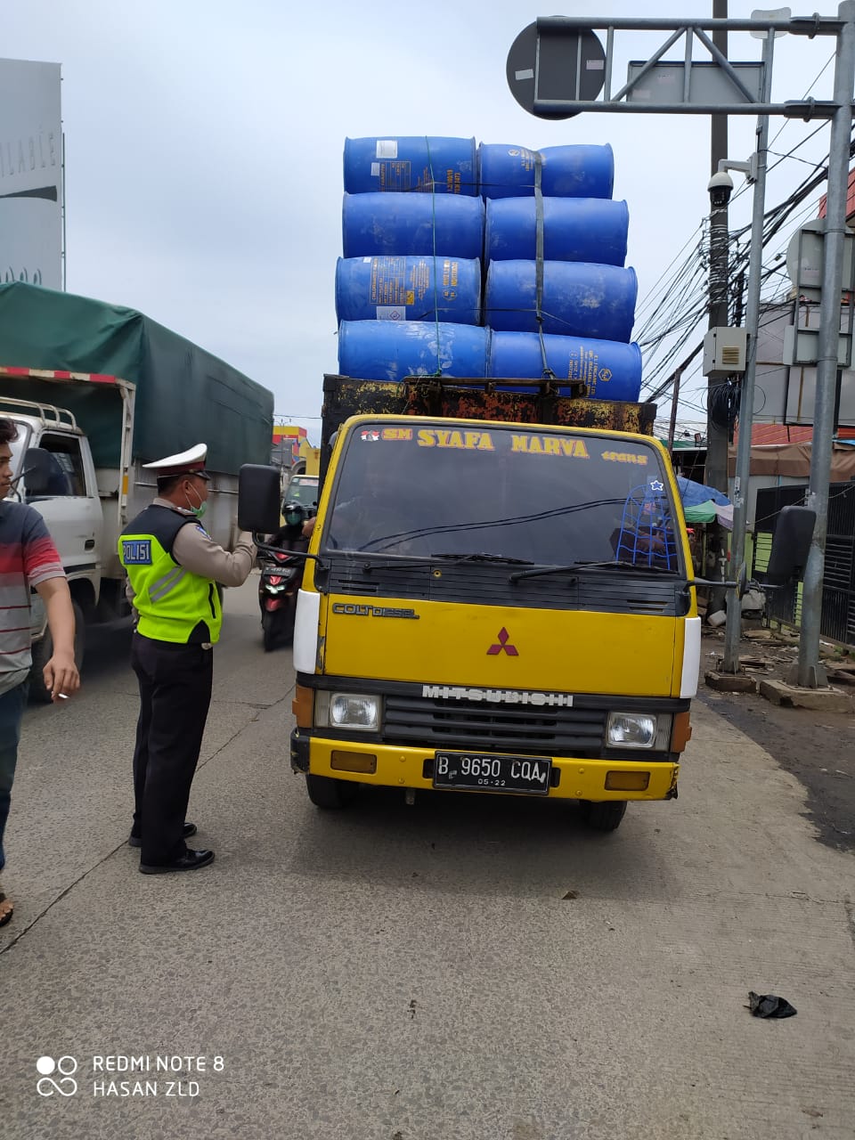 Satuan Lalu Lintas Polresta Tangerang menindak kendaraan barang dengan muatan berlebih dan pengendara roda dua yang tidak dilengkapi surat-surat dan menggunakan helm. Penindakan digelar di Jalan Raya Serang tepatnya di Desa Cibadak, Kecamatan Cikupa, Kabupaten Tangerang, Senin (9/3/2020).