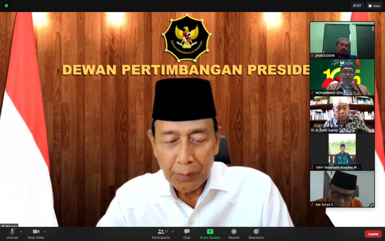 Pada audiensi dengan Ketua Wantimpres itu hadir Ketua Umum Pengurus Besar Mathla’ul Anwar (PBMA) KH Ahmad Sadeli Karim, Wakil Ketua Umum KH Zaenal Abidin Syuja’i, Sekjen KH Oke Setiadi MSc, dan Ketua Muslimat Mathla’ul Anwar Hj Trisna Djuwaeli serta beberapa pengurus lainnya.