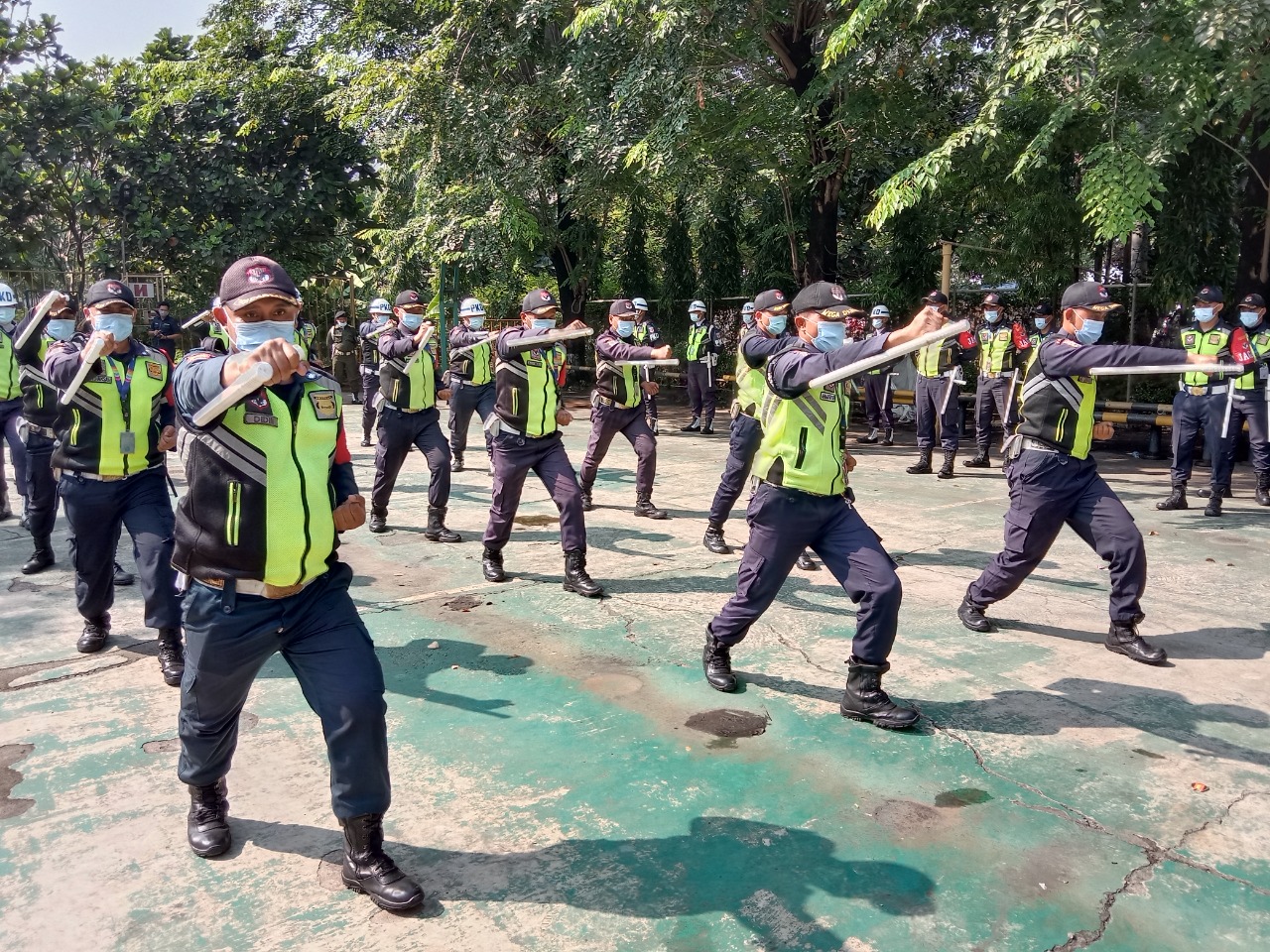 KEJARINFO.COM – PT.Mega Darma Yudha yang bergerak dibidang jasa keamanan, melaksanakan apel serah terima pekerjaan di PT.Bakrie Autopart Kota bekasi, apel tersebut dihadiri 40 anggota Mega Darma Yudha, dalam kesempatanya anggota tersebut menampilkan keahlian nya dibidang keamanan seperti pertunjukan bela diri, atraksi senam borgol yang disaksikan langsung Managemen PT.Bakri Autopart Bekasi Bapak Budi dan sekaligus selaku inspektur apel serah terima pekerjaan. Senin 7/6/2021