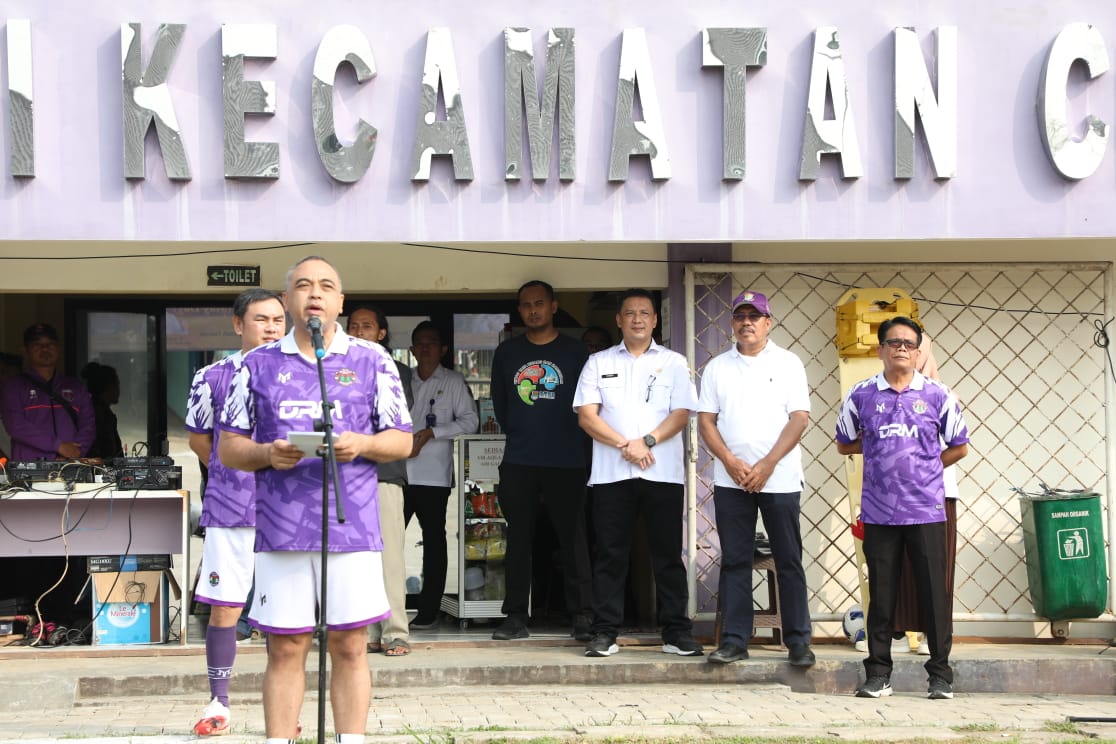 Tangerang,–Bupati Tangerang Ahmed Zaki Iskandar bersama Wakil Bupati, Kapolresta Tangerang, Dandim 0510 Tigaraksa dan Sekda bermain bola lawan buruh. Acara yang digelar dalam rangka memperingati Hari Buruh atau Mayday yang dilaksanakan di Stadion Mini Kecamatan Cikupa, Rabu (3/5/23).