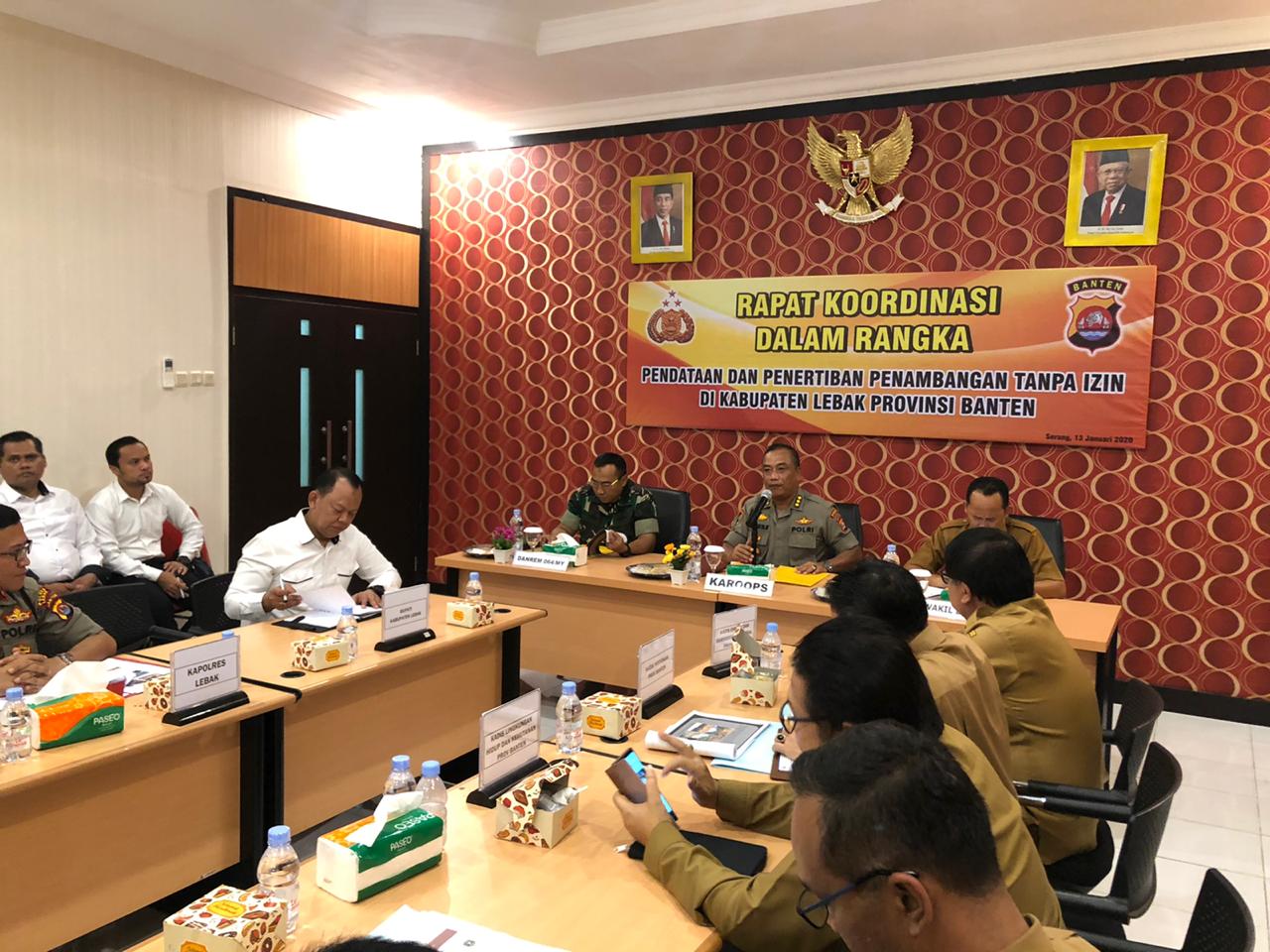 Rapat Lintas Sektoral dipimpin oleh Karo Ops Polda Banten Kombes Pol Aminudin Roemtaat, S.I.K. yang di hadiri oleh Danrem 064/Maulana Yusuf, dan beberapa instansi eksternal seperti Dandim Lebak, Dirkrimsus Polda Banten, Waka Polres Lebak, Wakil Bupati Lebak, Kepala Kantor SPNW Lebak, dan unsur pemerintahan Prov. Banten yang diantaranya Kadis KLHK, Kadis ESDM, Kadis Pertanian, kegiatan di lakukan diruang Posko Operasi Biro Ops Polda Banten. Senin (13/1/2020).
