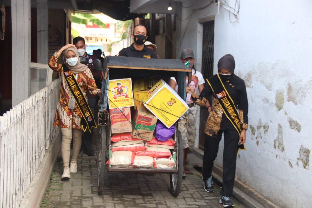 Serang, Banten – Masih suasana IdulFitri 1 Syawal 1442 H, Menjalankan program Kapolda Banten “Warung Jum’at” Tim Jumat Barokah Polda Banten, Dimasa pandemi yang kedua kalinya menyalurkan puluhan paket sembak ke Panti Asuhan Nurul Islam Desa kebaharan Lopang Kota Serang, Jum’at 28/05/2021