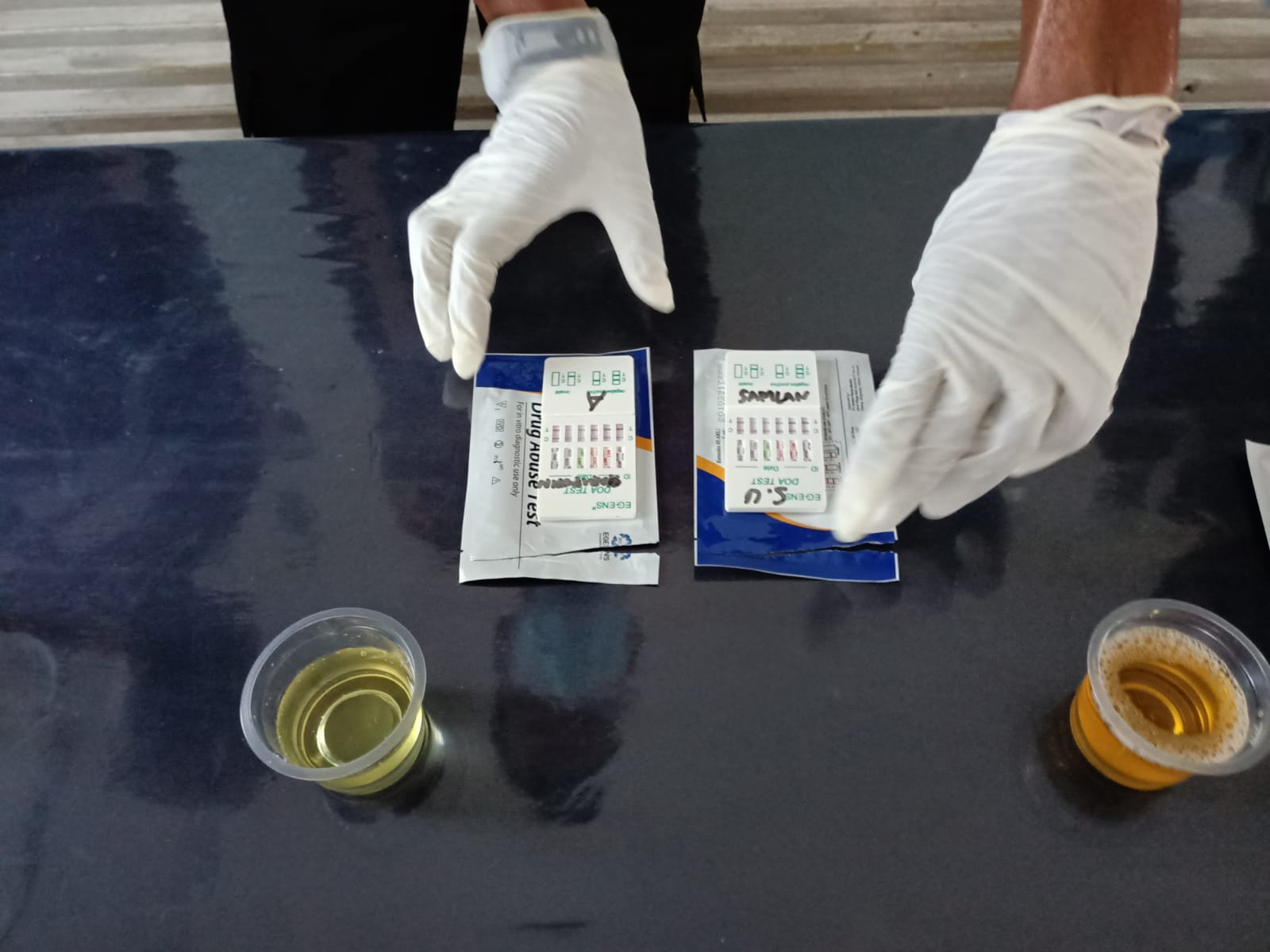 Pemeriksaan urine yang dilakukan tanggal 1 dan 2 september 2021 di lakukan secara bertahap oleh Sidokes Polres Briptu Andi Naser terhadap empat personil yang diantaranya dua personil yang berinisial SU dan dua personil berinisial A.