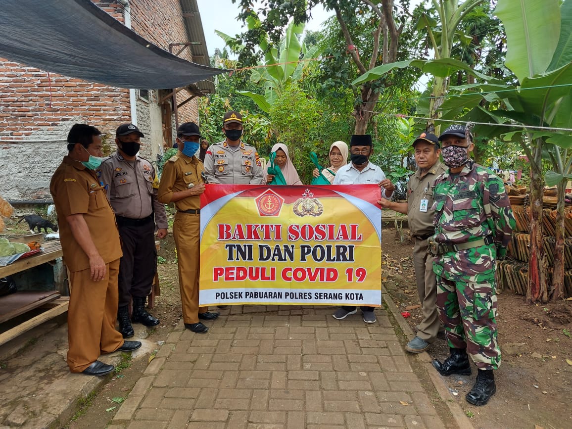Polsek Pabuaran dan TNI, Bhakti Sosial Peduli Polsek Pabuaran Polres Serang Kota Polda Banten, bersama TNI dan Kecamatan lakukan Bhakti Sosial terhadap sesama hamba Allah SWT yang terdampak Covid 19.