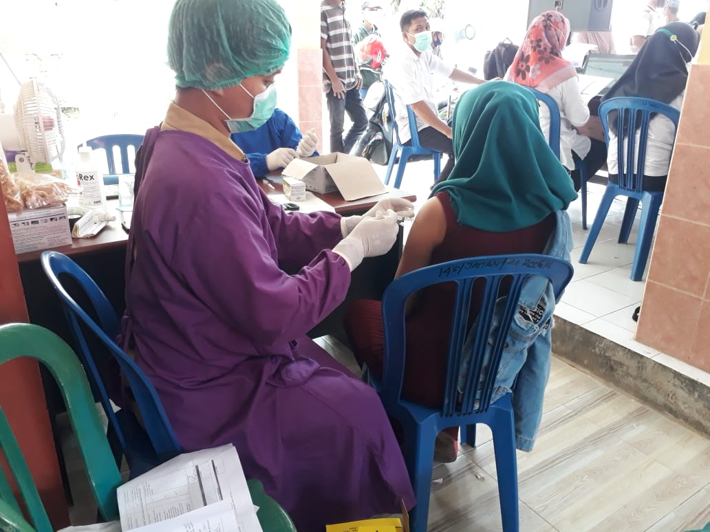 Sebelum melaksanakan suntik vaksin terdapat prosedur yang harus dilaksanakan yaitu Sebelum dilakukan penyuntikan Vaksin dilakukan pendataan penerima Vaksin, Selanjutnya dilakukan pemeriksaan fisik penerima Vaksin meliputi : Tensi, suhu badan, berat badan dan gula darah, Dilaksanakan Vaksinasi oleh Petugas Vaksinator bila penerima Vaksin telah melalui poin 1 dan 2 diatas dan Dilakukan pencatatan dan pelaporan untuk Input data melalui online dan pemberian kartu Vaksin kepada penerima Vaksin.