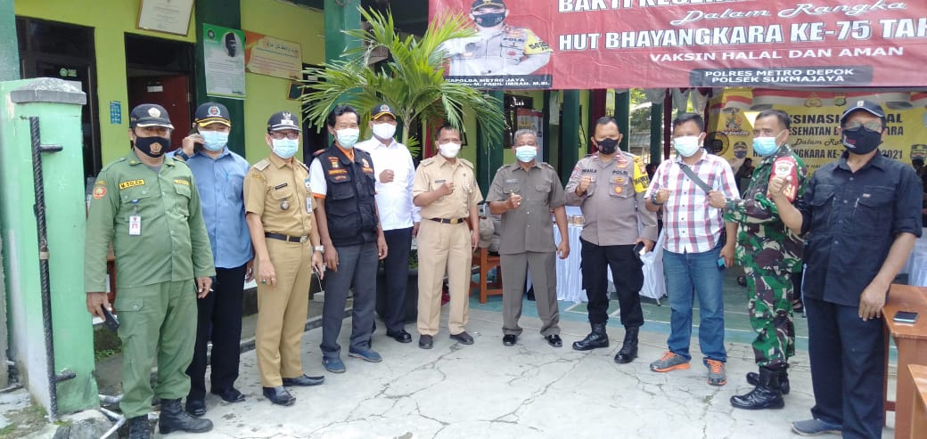 Kejarinfo.com, (DEPOK),-Polres Metro Depok dengan Poksek Sukmajaya melaksanakan Vaksinasi masal dalam rangka HUT Bayangkara ke – 75 tahun 2021.