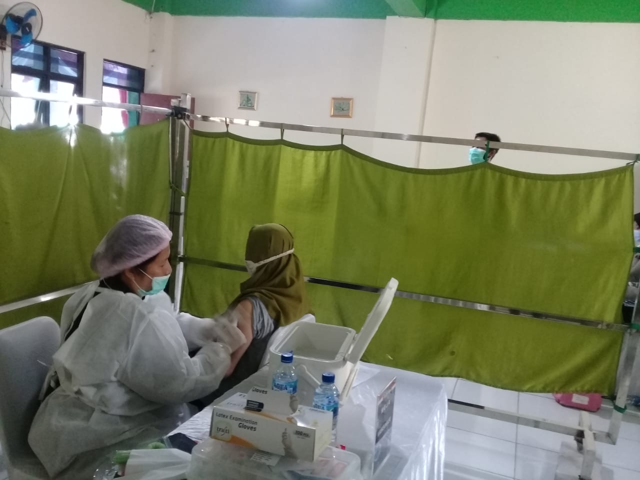 Pelaksanaan vaksin masal www di lakukan bertempat di halaman sekolah Mts Irsyadul Athfal RT 04/03 Kel urahan Kalibaru, Cilodong, Selasa (29/6/2021.