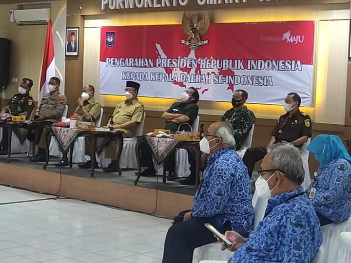 Banyumas – Bupati dan Forkopimda Banyumas Ikuti Rapat Yang Dipimpin Presiden Bupati Banyumas Achmad Husein mengungkapkan telah mengikuti rapat virtual bersama Presiden Joko Widodo (Jokowi). Menurut Husein, dalam rapat tersebut Jokowi memerintahkan seluruh kepala daerah untuk mengantisipasi lonjakan kasus virus corona (Covid-19) usai libur lebaran.