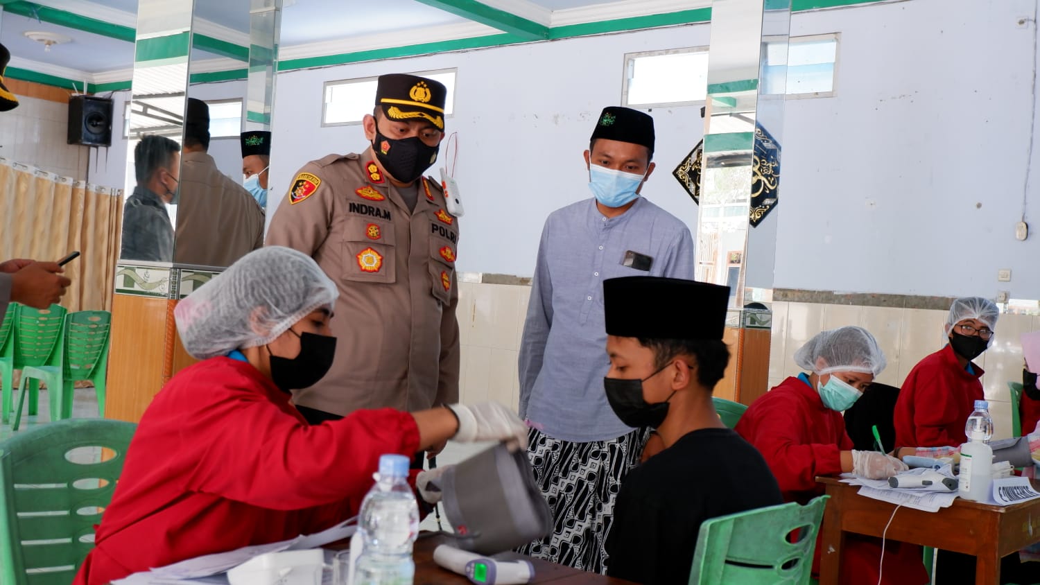 Salatiga – Ratusan Santri Pondok Pesantren di Kota Salatiga mendapatkan vaksin Covid-19 Sinovac dosis pertama dalam Vaksinasi Serentak Pesantren dan Rumah Ibadah Sinergi Program Vaksinasi Polri dan Staf Khusus Kepresidenan yang secara serentak dilaksanakan seluruh Indonesia, untuk Polres Salatiga dilaksanakan di Pondok Pesantren Tarbiyatul Islam Al-Falah Jl Bima No. 02 Kel. Dukuh Kec. Sidomukti Kota Salatiga, pada hari Senin 06/09/2021.