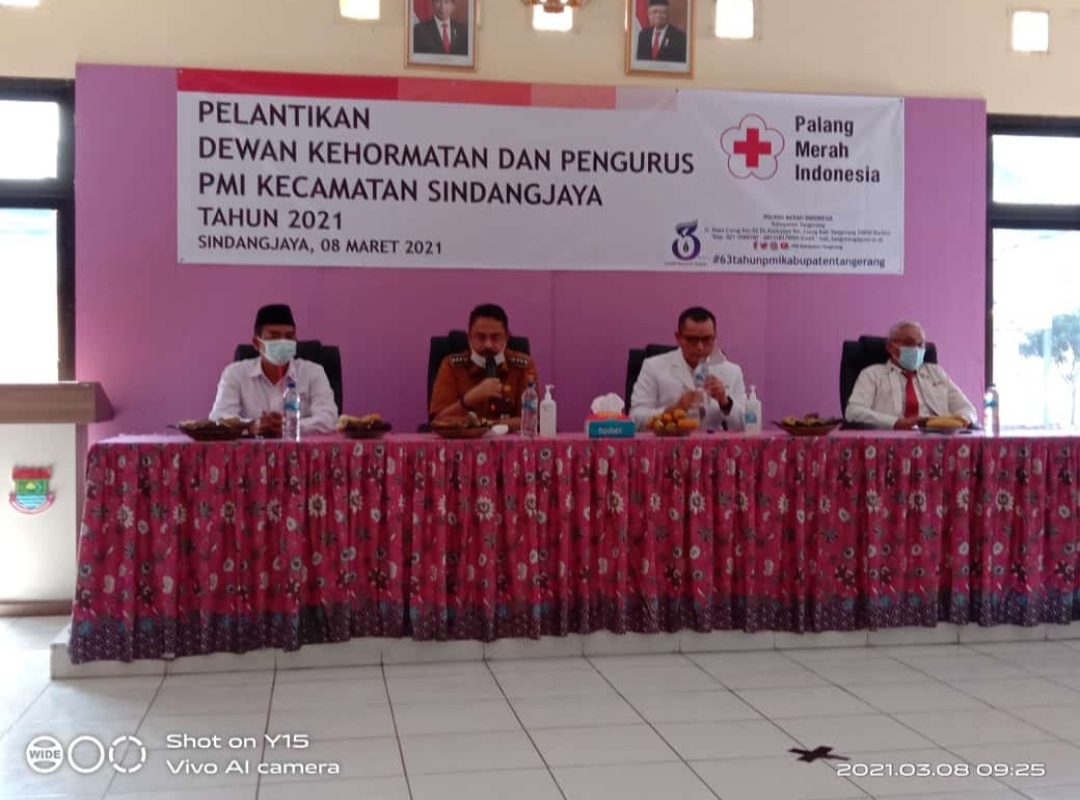 Camat Sindang Jaya H.Abudin S.IP,MM memberikan ucapan selamat kepada Dewan Kehormatan dan Ketua PMI kecamatan serta Pengurus PMI Kecamatan Sindang jaya yang sudah dilantik. Abudin berharap setiap pengurus dapat bekerja secara maksimal dan dapat hadir di tengah masyarakat dalam membantu pemerintah daerah mengatasi kondisi pandemi covid-19 di Kabupaten Tangerang dan Kecamatan Sindang jaya khusus nya.