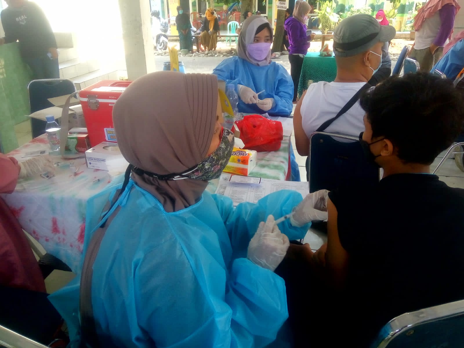 Pelaksanaan vaksinasi dilaksanakan bertempat di halaman yayasan pendidikan al-jihad kalibaru, kecamatan cilodong, sabtu (11/9/2021)