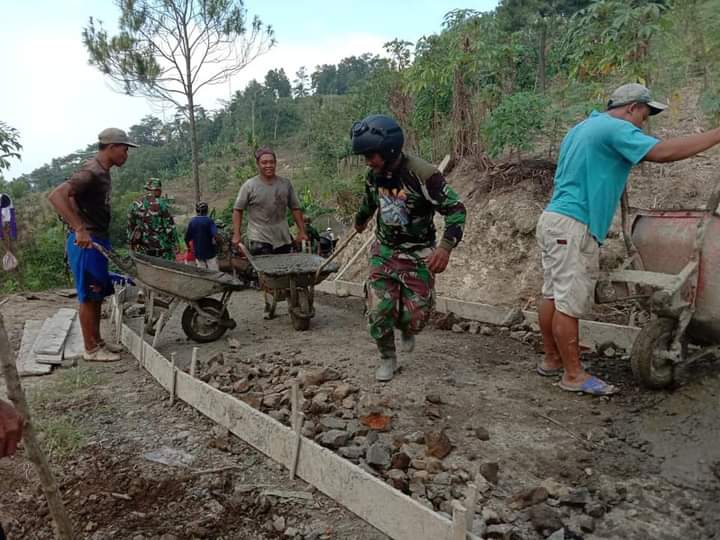 Di hari lima pelaksanaan TMMD sengkuyung ini, tampak kolaborasi mereka bersama masyarakat setempat, bahu membahu pengecoran jalan yang merupakan sasaran fisik utama seoerti jalan rabat yang di betonisasi panjang 2.573 meter, lebar 2.5 meter dan tebal 15 cm menuju Wadas Tumpang.