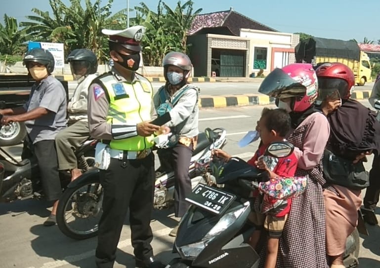 PEKALONGAN – Satuan Lalulintas Polres Pekalongan terus melakukan operasi simpatik dalam Ops Patuh Candi 2021. Salah satunya dengan membagikan paket sembako dan masker kepada warga dan pengguna kendaraan yang sedang melintas di jalan. Tak hanya pengendara motor, petugas juga memberikan paket serupa kepada Pedagang Kaki Lima (PKL) hingga tukang ojek online maupun ojek pangkalan.