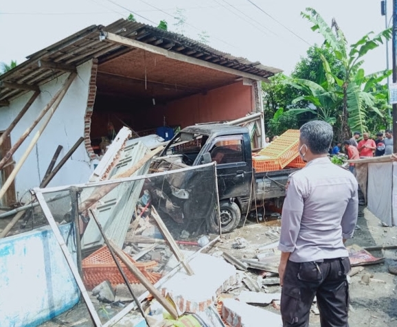 Kapolsek menjelaskan akibat kejadian tersebut ruko milik Suwarso (41) warga Desa Selanegara, Kecamatan Kaligondang mengalami kerusakan. Bagian depan ruko hancur dan sebagian temboknya roboh.