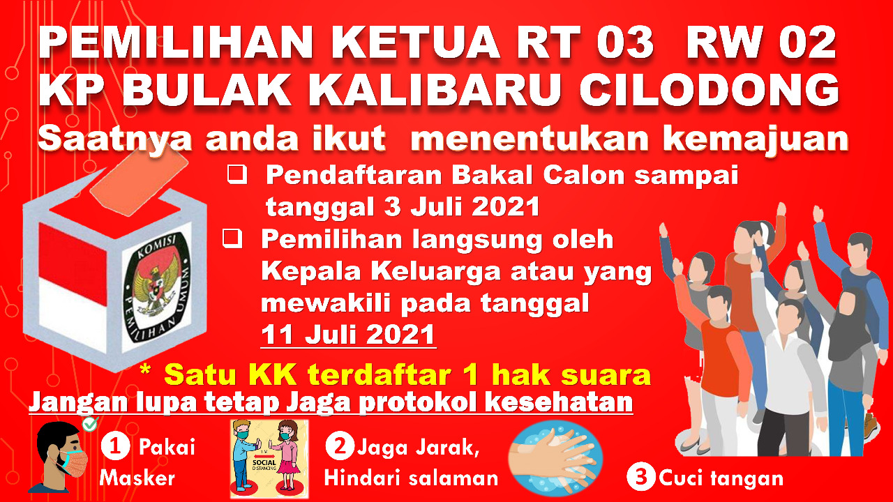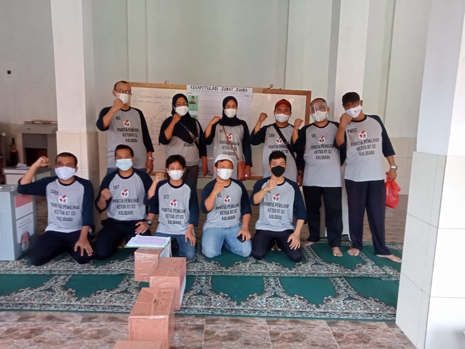 Syukur Alhamdulillah, kita dapat melaksanakan pemilih ketua RT dengan mekanisme direncanakan pemilihan untuk mengundang Bpk/ibu untuk dapat hadir pada hari Minggu 11 Juli 2021, namun karena situasi dan kondisi yang tidak mungkin bisa hadir berkerumunan, maka panitia akan melakukan pemungutan suara dengan mendatangi warga dari rumah ke rumah kata Mohamad Soleh ketua panitia.