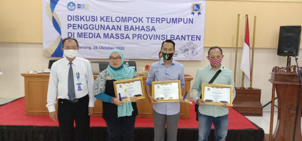 Penganugerahan pemenang dilakukan bersamaan dengan Diskusi Kelompok Terpumpun Penggunaan Bahasa di Media Massa Propinsi Banten, di Aula Hotel Puri Kayana, Banten, Senin, 26/10/2020.