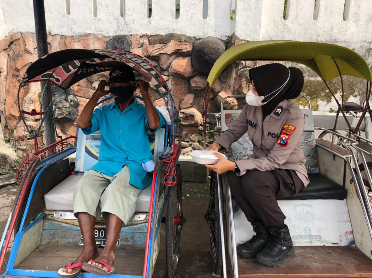 Tak hanya Slamet yang beruntung siang ini. Sebanyak 100 nasi kotak dibagikan anggota Patroli Srikandi Polres Jember kepada para tukang becak dan pedagang kaki lima yang lagi mencari nafkah di 3 Lokasi berbeda.