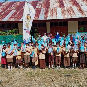 Satgas Pamtas Yonmek 403/WP Bagikan Buku dan Alat Tulis Kepada Anak Usia Sekolah di Wilayah Perbatasan RI-PNG
