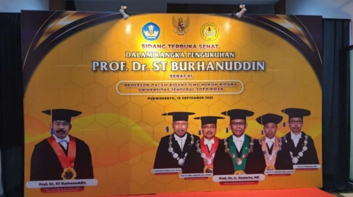 Pengukuhan juga berdasarkan Keputusan Menteri Pendidikan, Kebudayaan, Riset, Dan Teknologi Nomor : 37421/ MPK.A/ KP.05.00/2021 Tentang Pengangkatan Dalam Jabatan Akademik Dosen Tidak Tetap dan Pengangkatan Jabatan Profesor Ilmu Hukum Pidana kepada ST Burhanuddin.