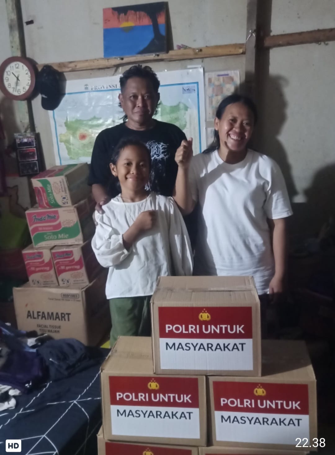Kapolsek Ciledug Kompol Susida Aswita, S.Sos., M.M., didampingi Bhabinkamtibmas setempat, menyerahkan bantuan berupa beras, sembako, mi instan, crayon, buku gambar, serta tali asih. Kegiatan tersebut juga dirangkai dengan buka puasa bersama keluarga kecil itu.